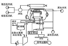 除了主機(jī)以外,尚有液壓系統(tǒng)、高壓風(fēng)機(jī)、低壓風(fēng)機(jī)、給料泵、各種風(fēng)動(dòng)、電動(dòng)閘門及給料機(jī)和運(yùn)輸機(jī)等輔助設(shè)備,參見圖2